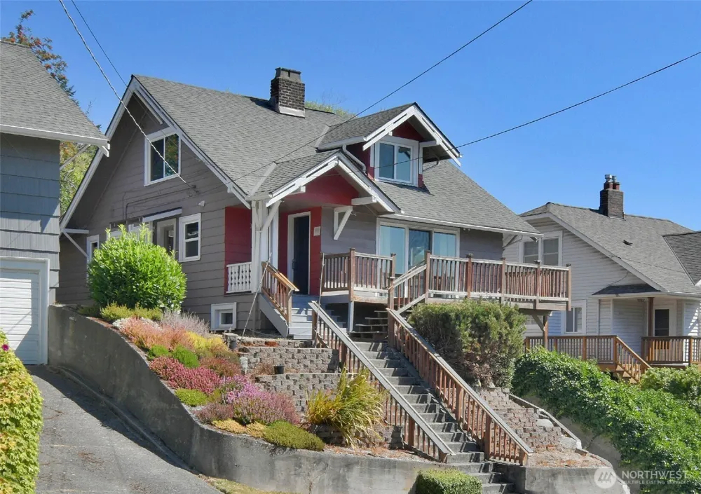 Located just minutes from the University of Washington and the lively Green Lake neighborhood, this 1923 classic beautifully combines timeless architectural character with thoughtful modern updates. Large windows frame sweeping views of the Cascades, Mt. Rainier, and unforgettable sunrises that fill the home with natural light. Current owners rented room-by-room to college students, the property offers immediate income potential while maintaining flexibility for a variety of living arrangements. The lower level features a private entry, one bedroom, three additional finished rooms, a full kitchen, ¾ bath, and utility area with coin operated washer/dryer—perfect for extended living, guests, hobbies, or additional rental opportunities.